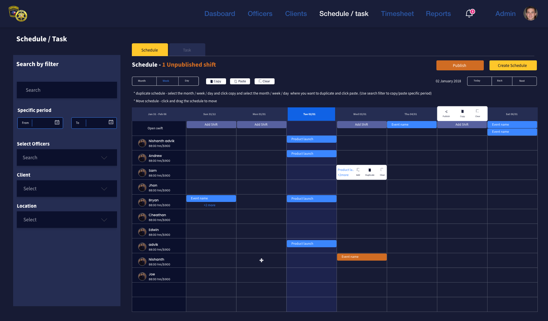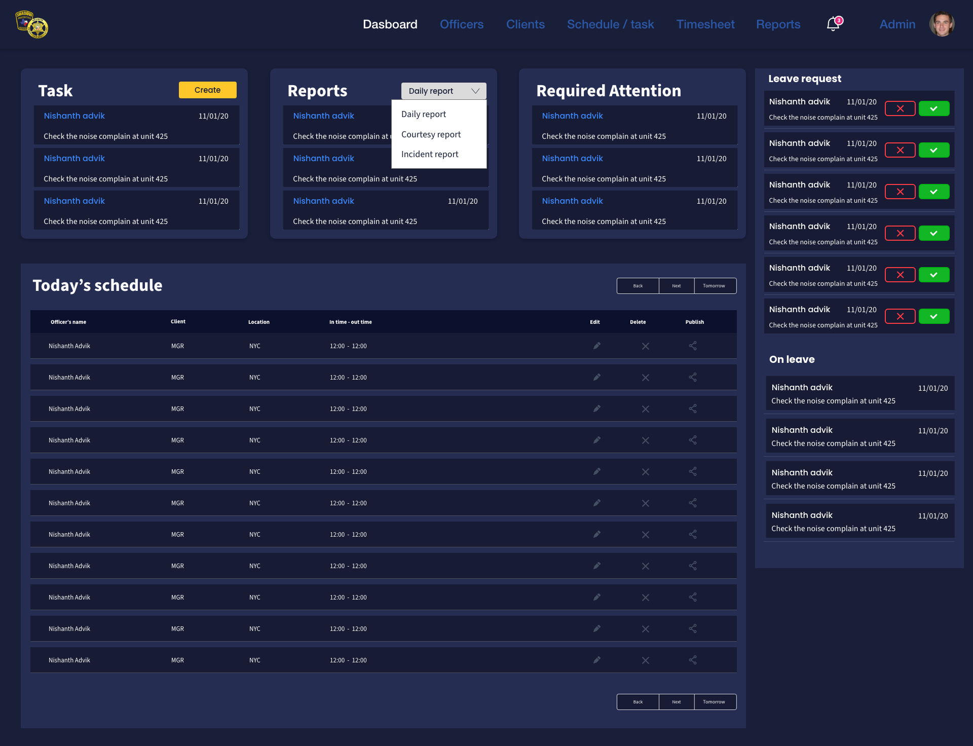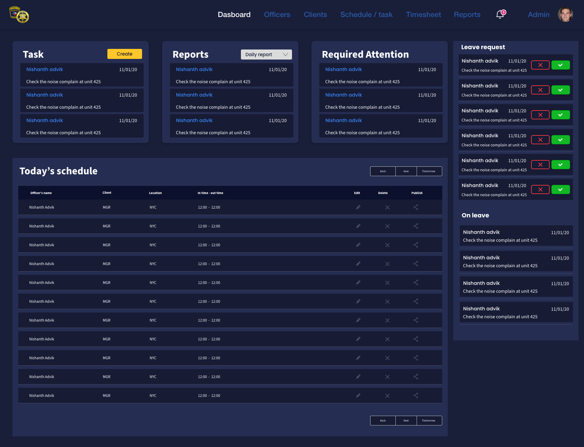 SPSI WireframesVerificationTagsLast edited@March 10, 2023 10:35 AMLast edited time@March 10, 2023 10:35 AMOwnerRidgewayPersonWireframes: ClientDashboardNotificationOfficersProfileReportScheduleTask ViewTimesheethttps://customer-rhsi8eoh8l3ddh6e.cloudflarestream.com/61274b2f0ea21bc2d8d324224519c015/iframe?poster=https%3A%2F%2Fcustomer-rhsi8eoh8l3ddh6e.cloudflarestream.com%2F61274b2f0ea21bc2d8d324224519c015%2Fthumbnails%2Fthumbnail.jpg%3Ftime%3D%26height%3D600&primaryColor=%23091547Wireframes: Client Dashboard Notification OfficersWireframes: OfficersProfileWireframes: Profile ReportWireframes: Report ScheduleWireframes: ScheduleSchedule: TaskTask ViewSchedule: TaskTimesheetWireframes: Timesheet